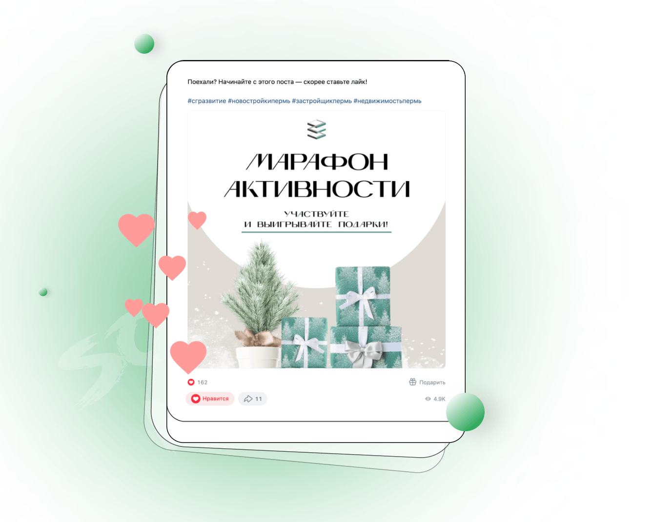 Подобные марафоны необходимо периодически проводить для работы над алгоритмами умной ленты: пользователь, который в течение продолжительного времени проявляет устойчивый интерес к контенту (лайкает, репостит) далее начинает видеть в своей ленте посты компании уже органически.