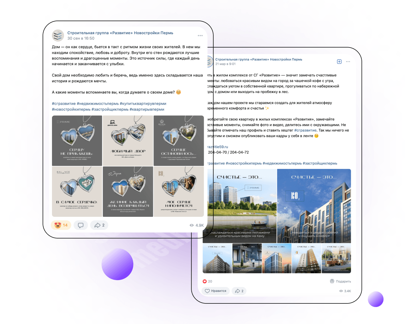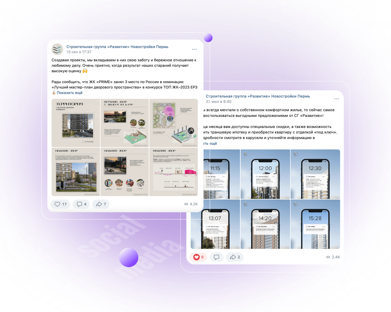 Мне нравится, что мы работаем с клиентом в тесной связке. Ежемесячно отдел маркетинга СГ «Развитие» направляет нам список акций, приоритеты по объектам и УТП, и уже на основе этой фактуры мы с командой можем творить.
