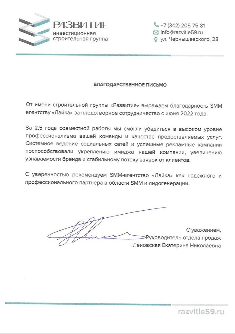 Наша группа во ВКонтакте сейчас полностью соответствует позиционированию компании. Публикуемый контент помогает нам обеспечивать информационную ГК «Развитие», а его оформление и подача — выстраивать дружественные отношения с целевой аудиторией. Мы не гонимся за большими цифрами, но нам важна положительная динамика и крепкая эмоциональная связь с клиентами. Благодарим SMM-агентство «Лайка» за то, что чувствуют нас и находят баланс между продающим, имиджевым и развлекательным контентом.