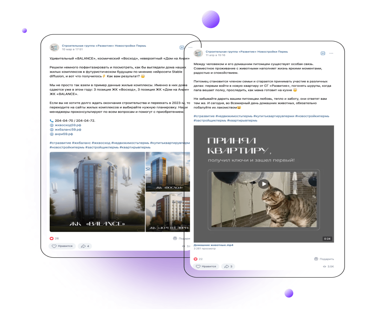 Ранее группа ВКонтакте СГ Развитие велась исключительно в информационно-продуктовом ключе: отчёты с хода строительства, акции месяца, продуктовые посты про отдельные жилые комплексы, планировки квартир.