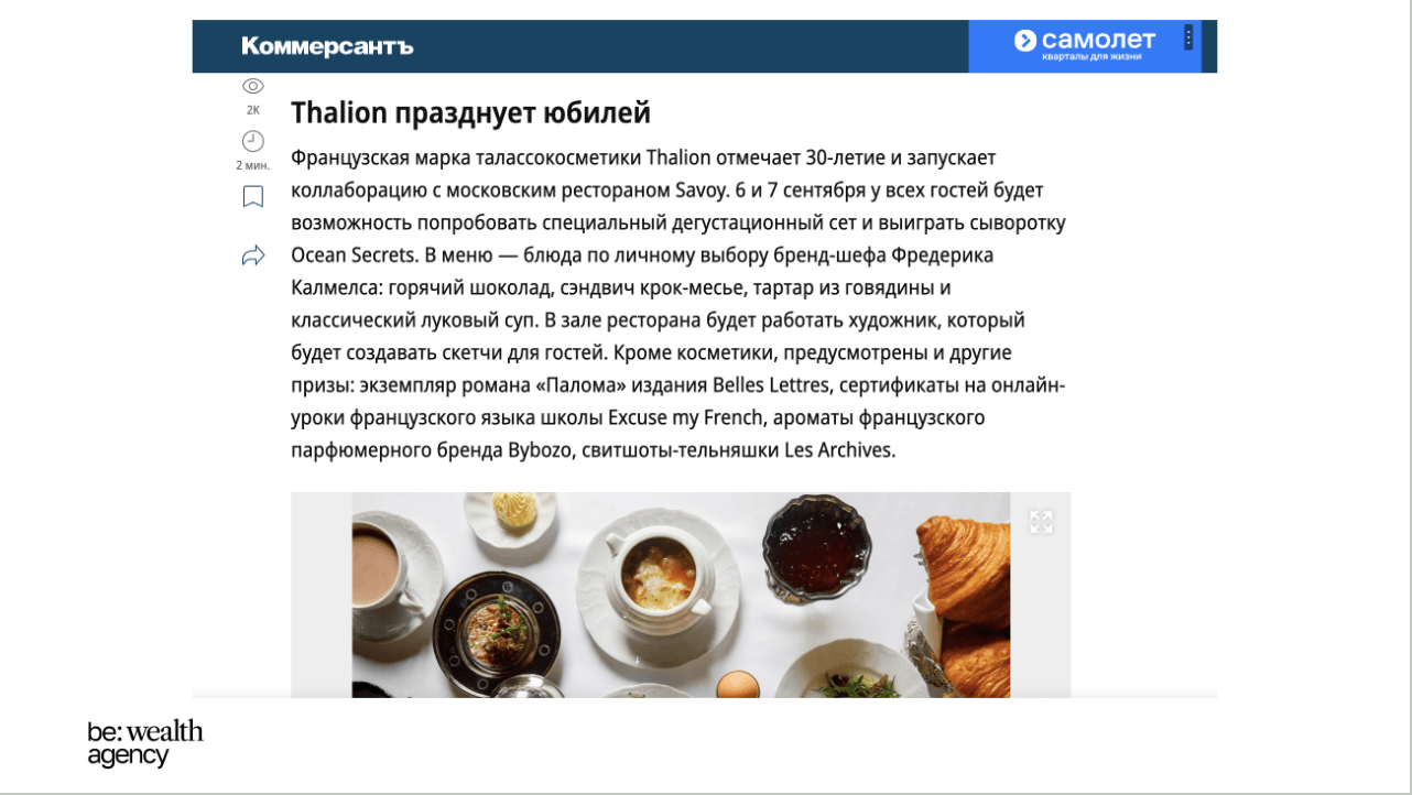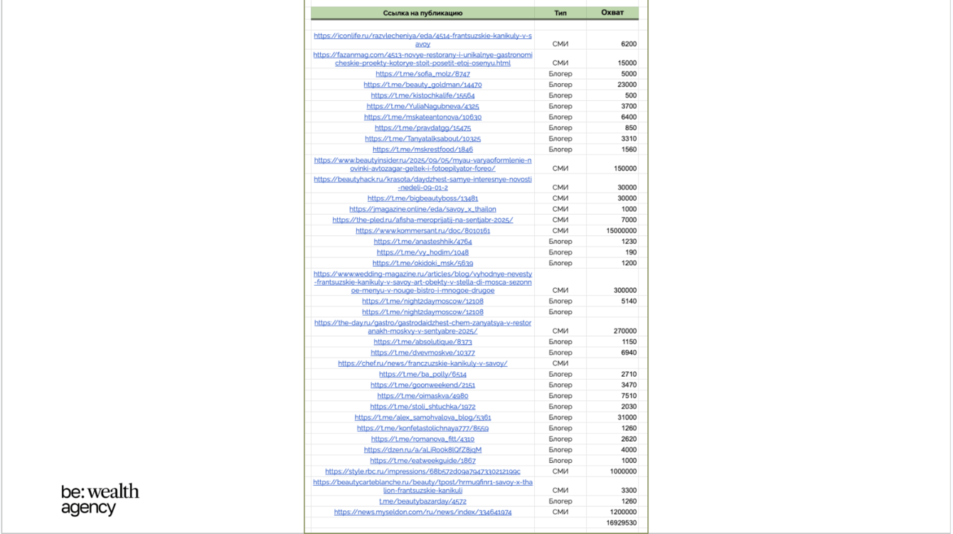 * Вышло 40 публикаций в премиальных медиа и телеграм-каналах (Коммерсант, РБК Стиль, The Day, Beauty Insider и др.).