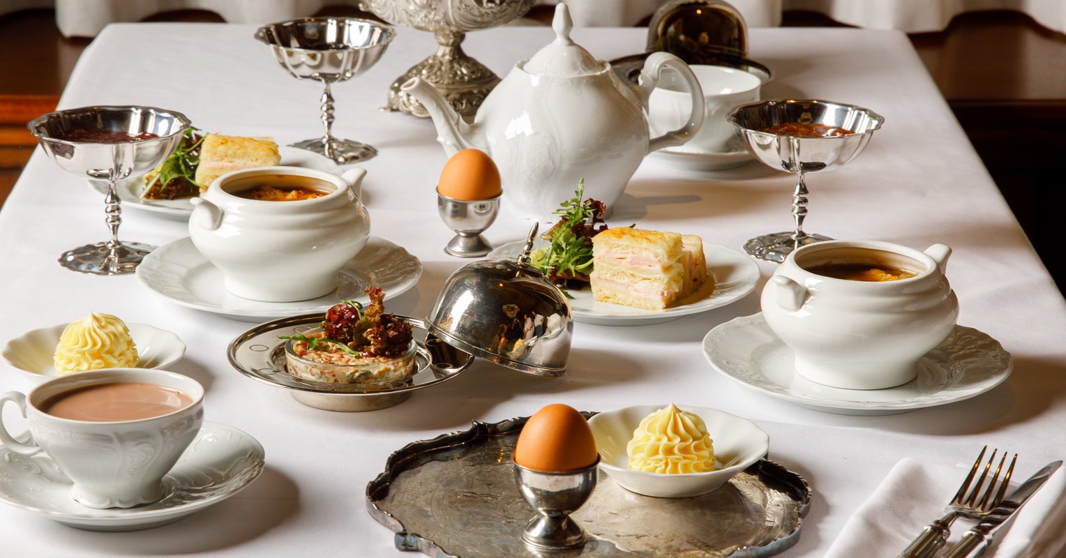 Французский завтрак можно было начать с горячего шоколада, теплой выпечки со сливочным маслом и домашним джемом, также в меню — легендарный Крок-месье, нежный тартар из говядины и ароматный луковый суп под хрустящей сырной корочкой.