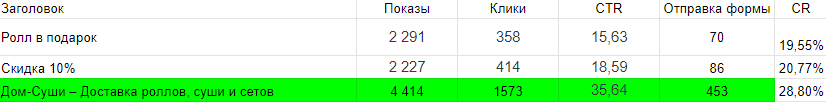 — Проанализировали эффективность объявлений и оставили наиболее конверсионные заголовки