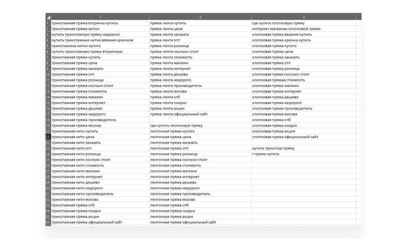 Для запуска рекламы по приоритетным товарам с помощью сервиса WordStat собрали ключевые слова и минус-слова.