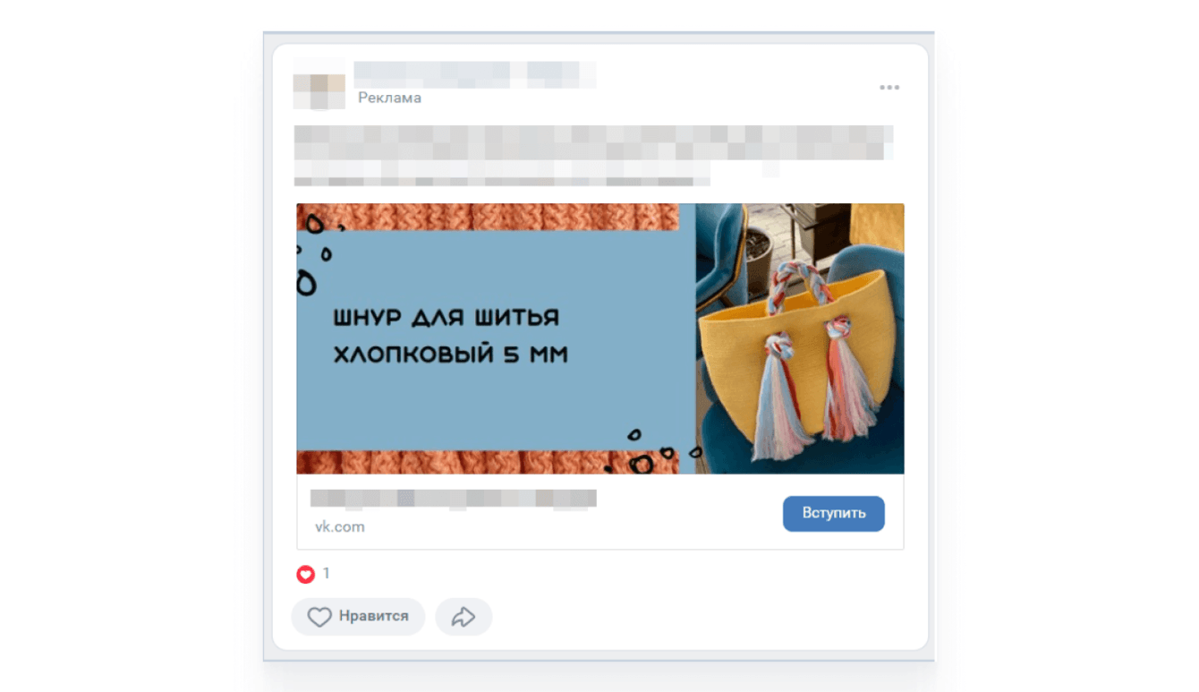 Далее с помощью функции ВК «Продвижение товаров» создали объявления по этим товарам и показывали в специальных товарных блоках в ленте пользователей ВК.