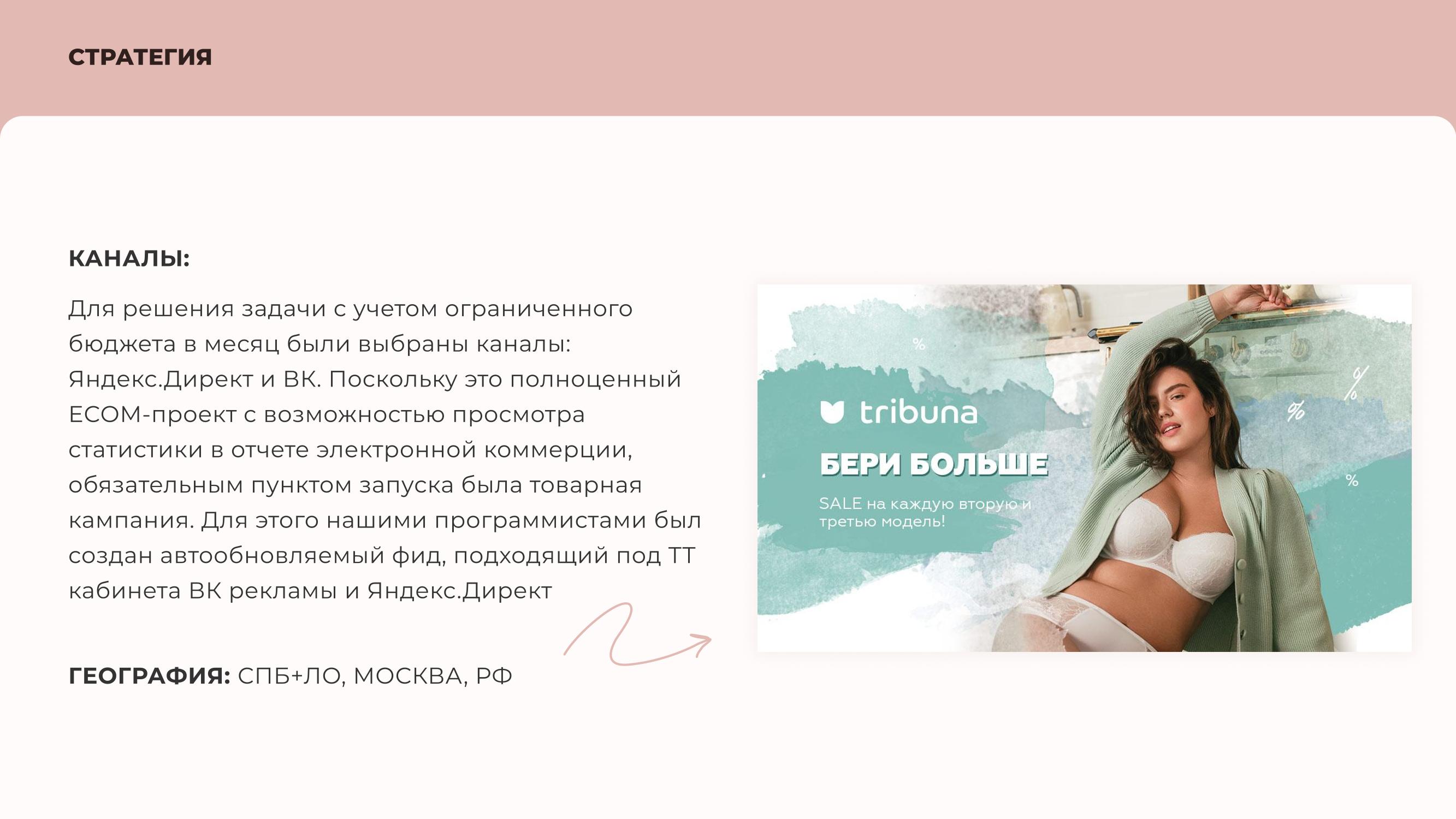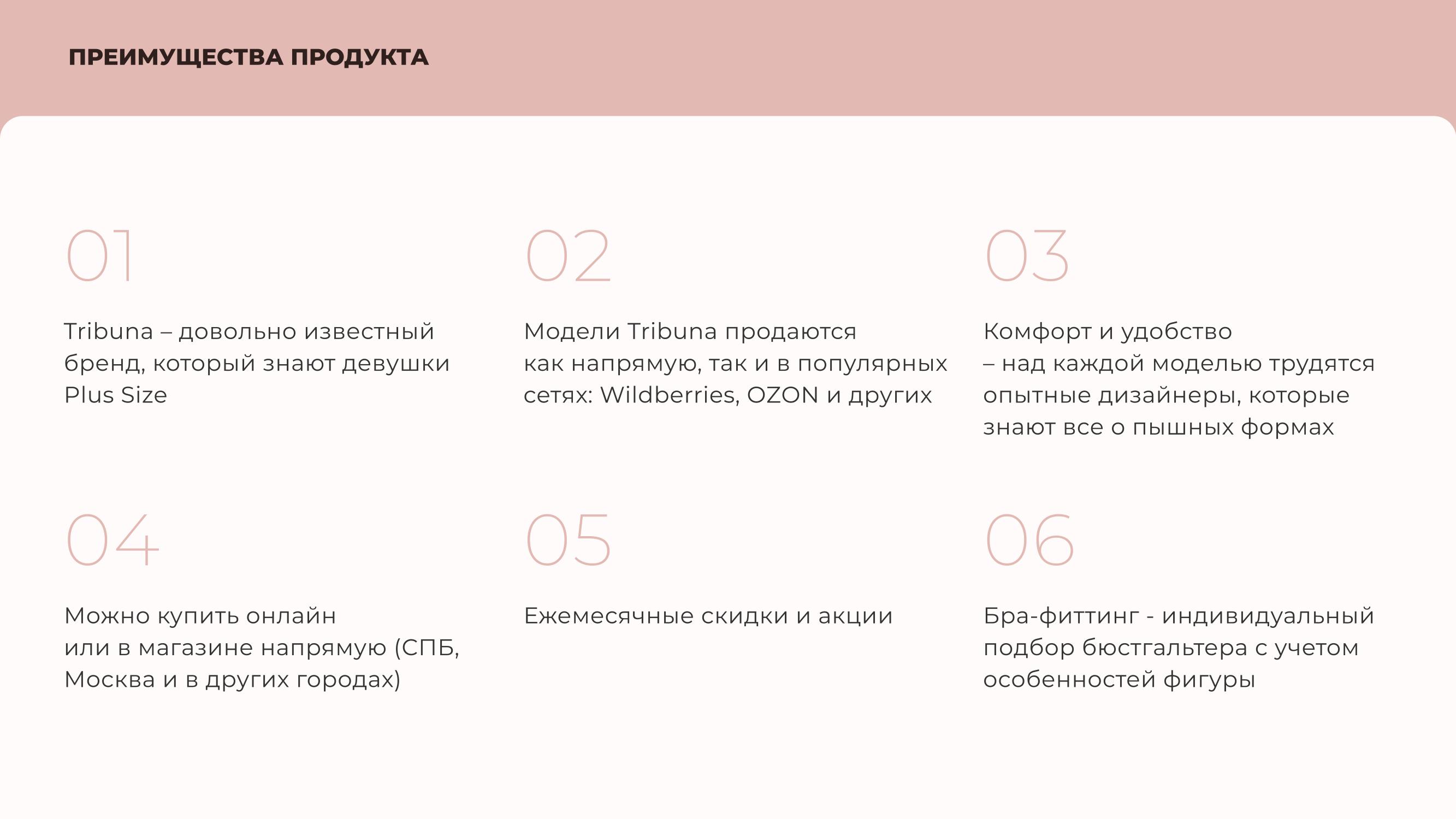 Бренд корректирующего и красивого белья для женщин Plus Size — Tribuna. Продукция продается через интернет-магазин, маркетплейсы (Wildberries, Ozon, Яндекс.Маркет) и розничные точки в Москве и Санкт-Петербурге.