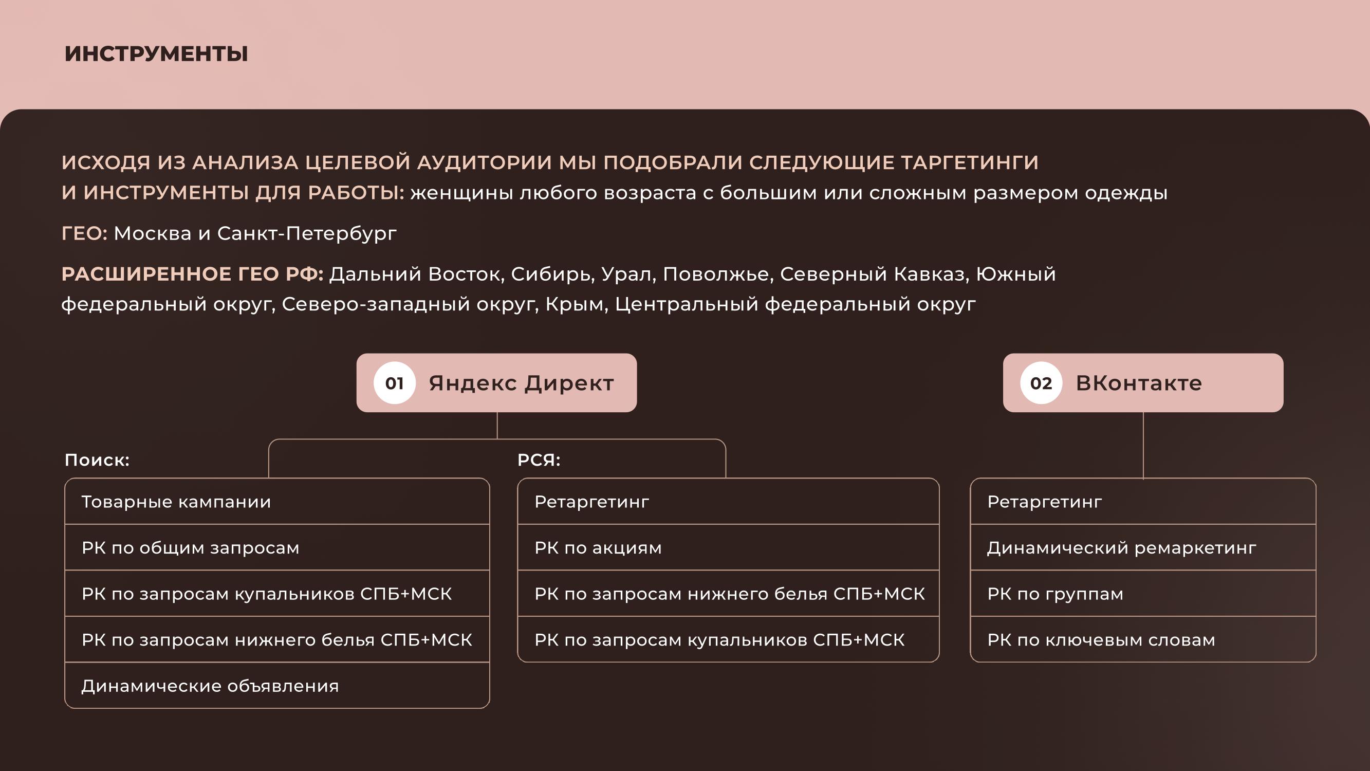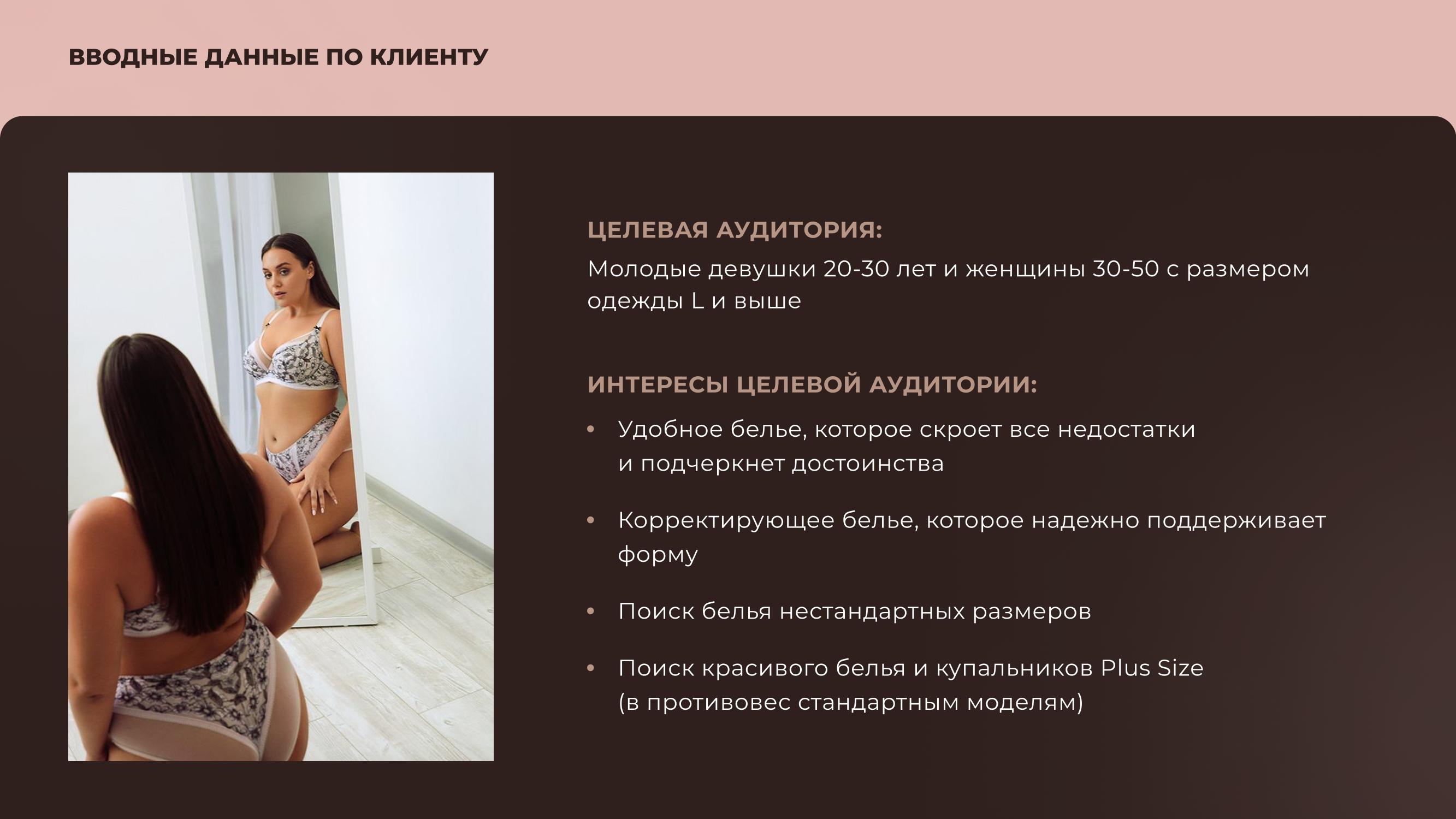 Проведен анализ целевой аудитории (18–55 лет, преимущественно женщины Plus Size).