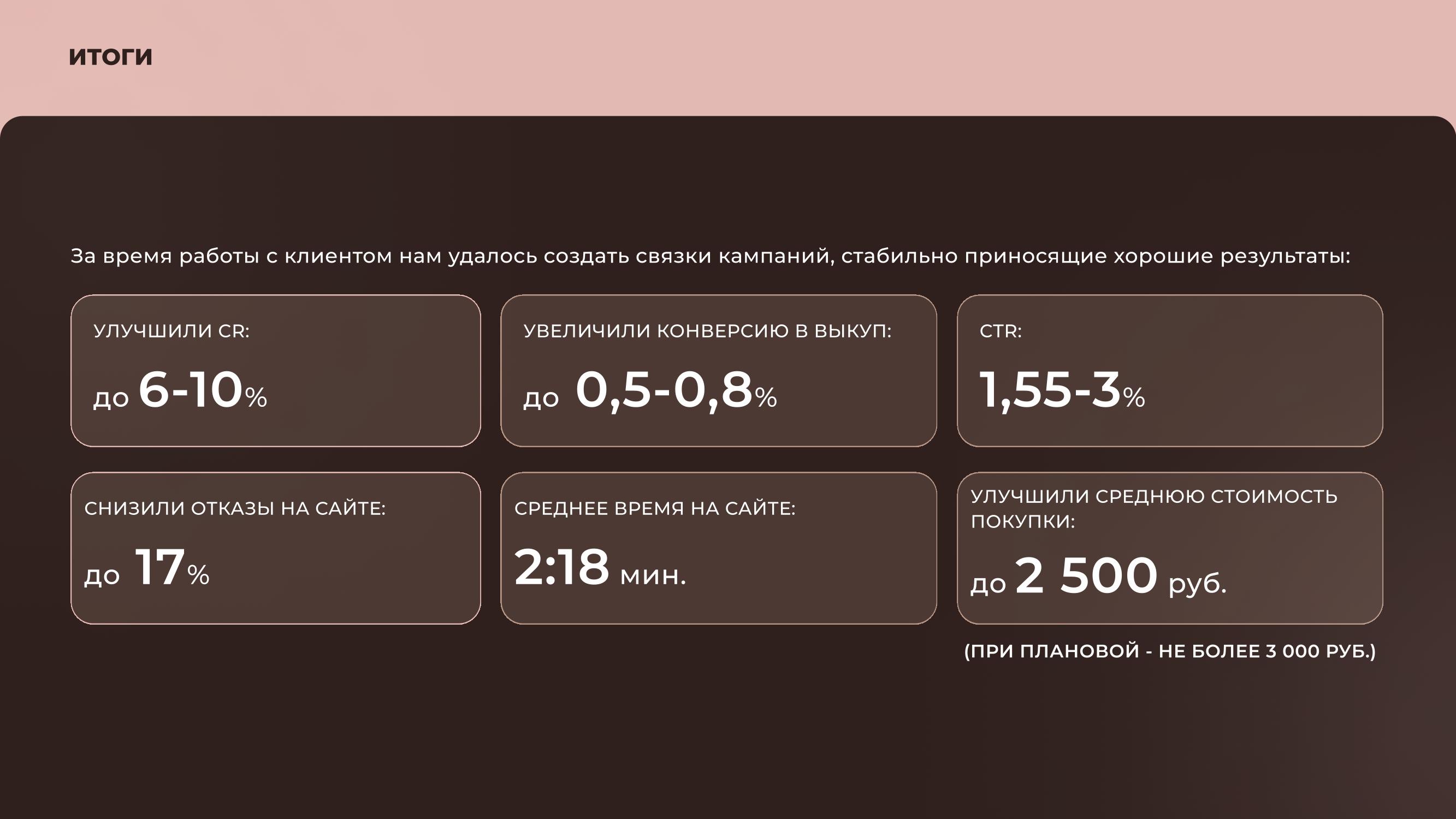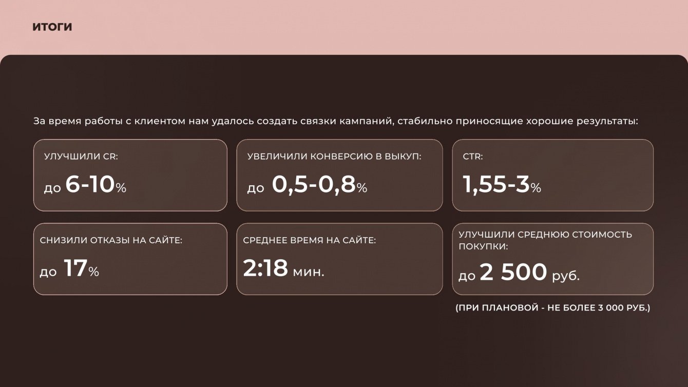 Рекламные креативы разрабатывались клиентом на основе рекомендаций нашей команды.