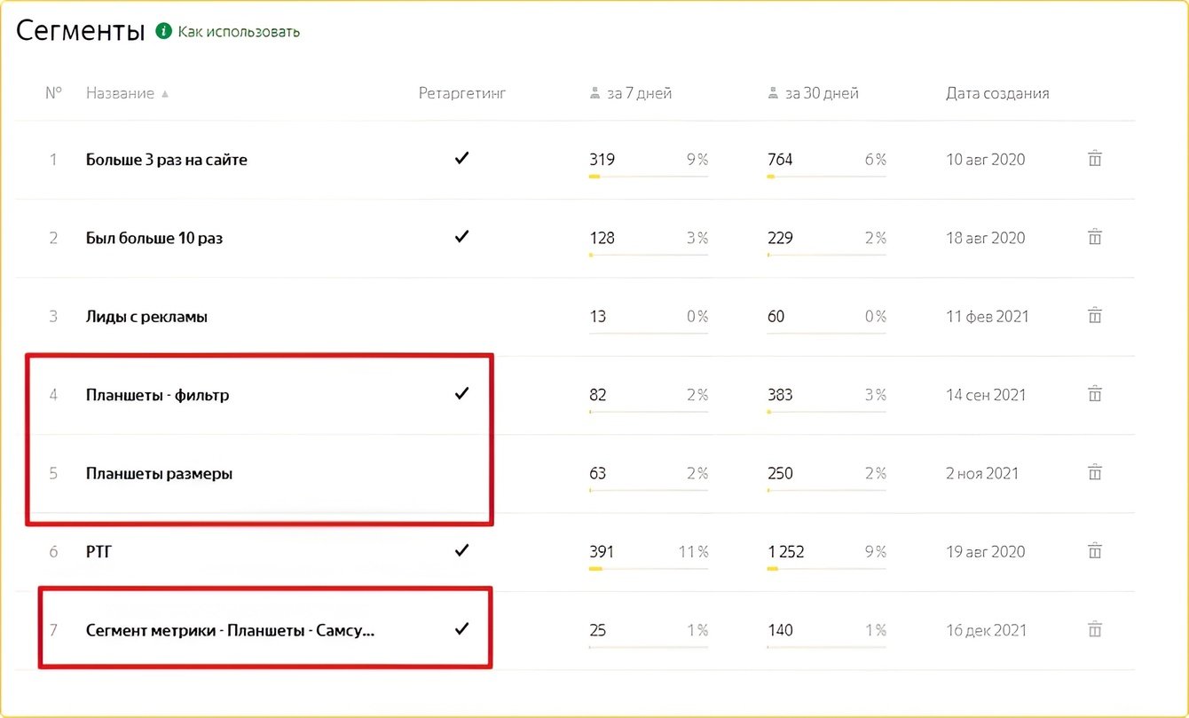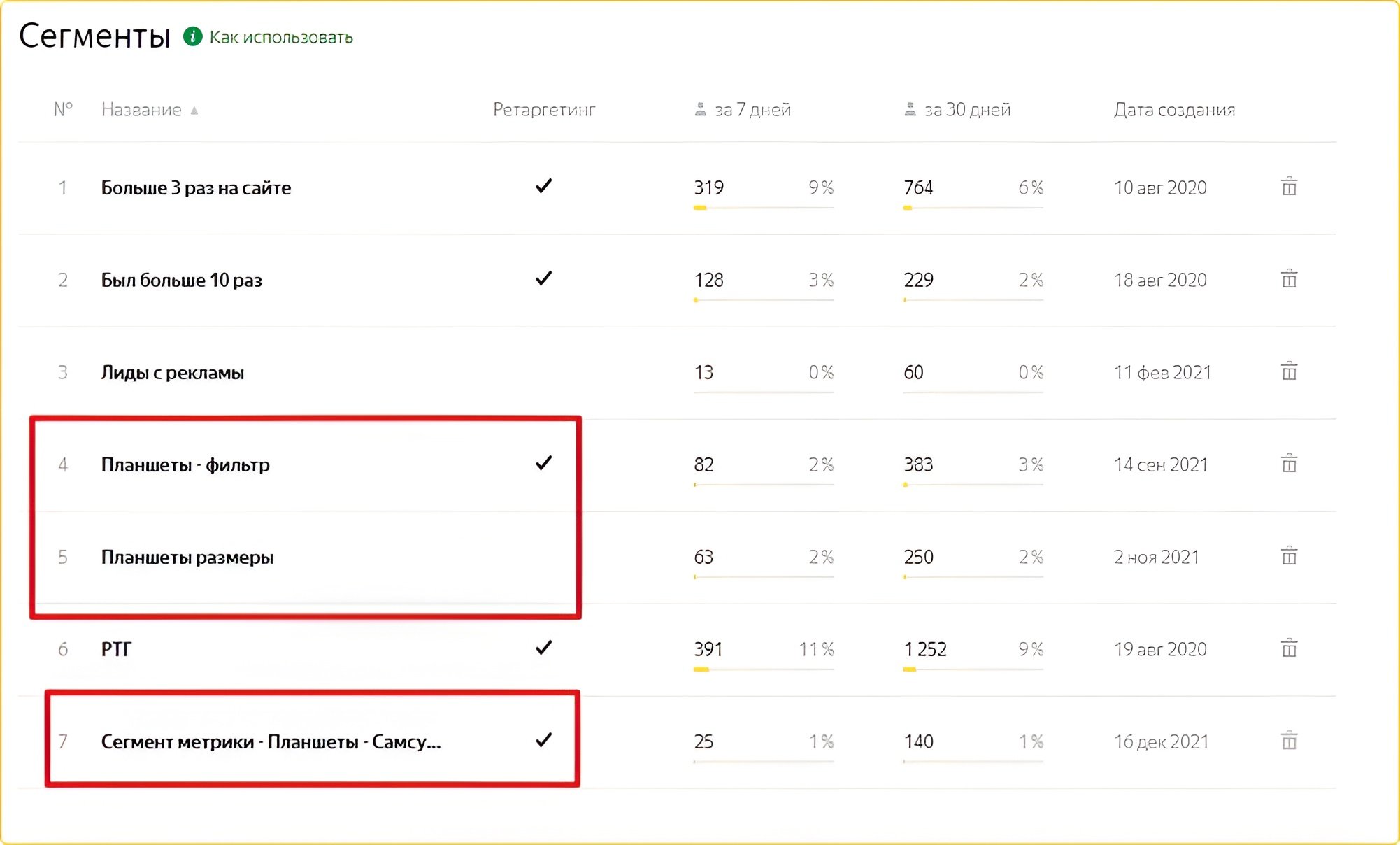 → создали аудитории в Яндекс Метрике, применили корректировки — трафик с планшетов сократили на 70%.