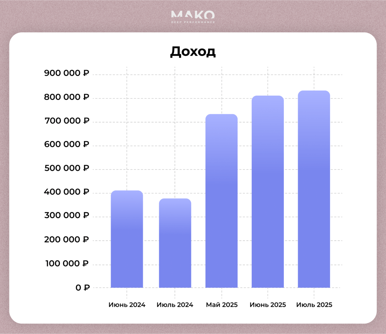 По сравнению с летом 2024 года продажи выросли в 2 раза. ДРР остался в рамках 35%, а в среднем составил 25%.