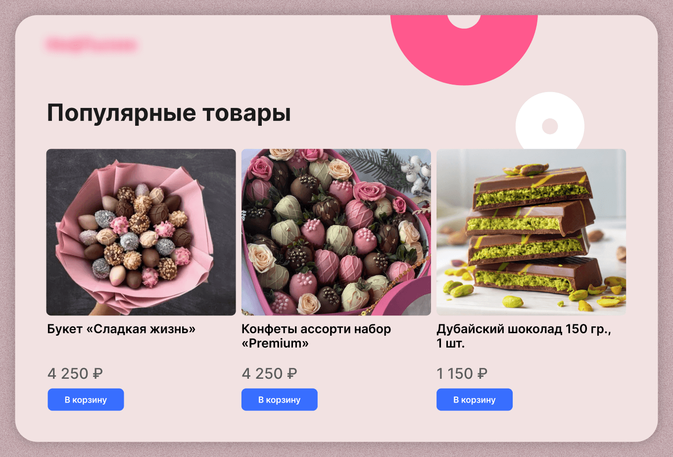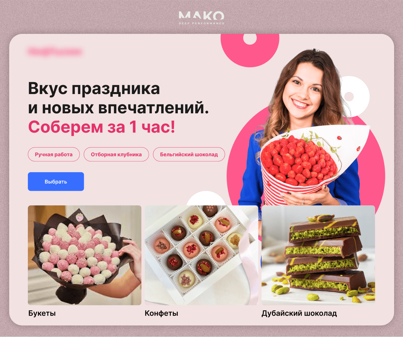 Тогда возникла идея: а если искусственно ограничить выбор? Создали на сайте отдельную посадочную с 10 продаваемыми позициями позициями: букеты из клубники, сладкие наборы и один вид дубайского шоколада. Остальные товары спрятали под кнопку «Больше предложений», которая вела в основной каталог.