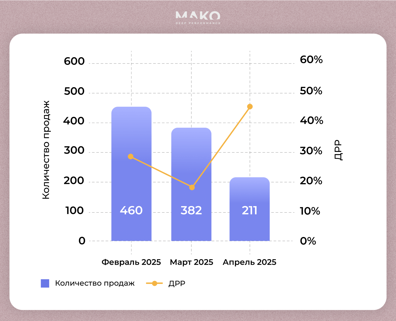 Это помогло: продажи выросли на 25%, а ДРР ― в 1,2 раза. Реклама оставалась рентабельной, и был задел для роста перед стартом сезона.