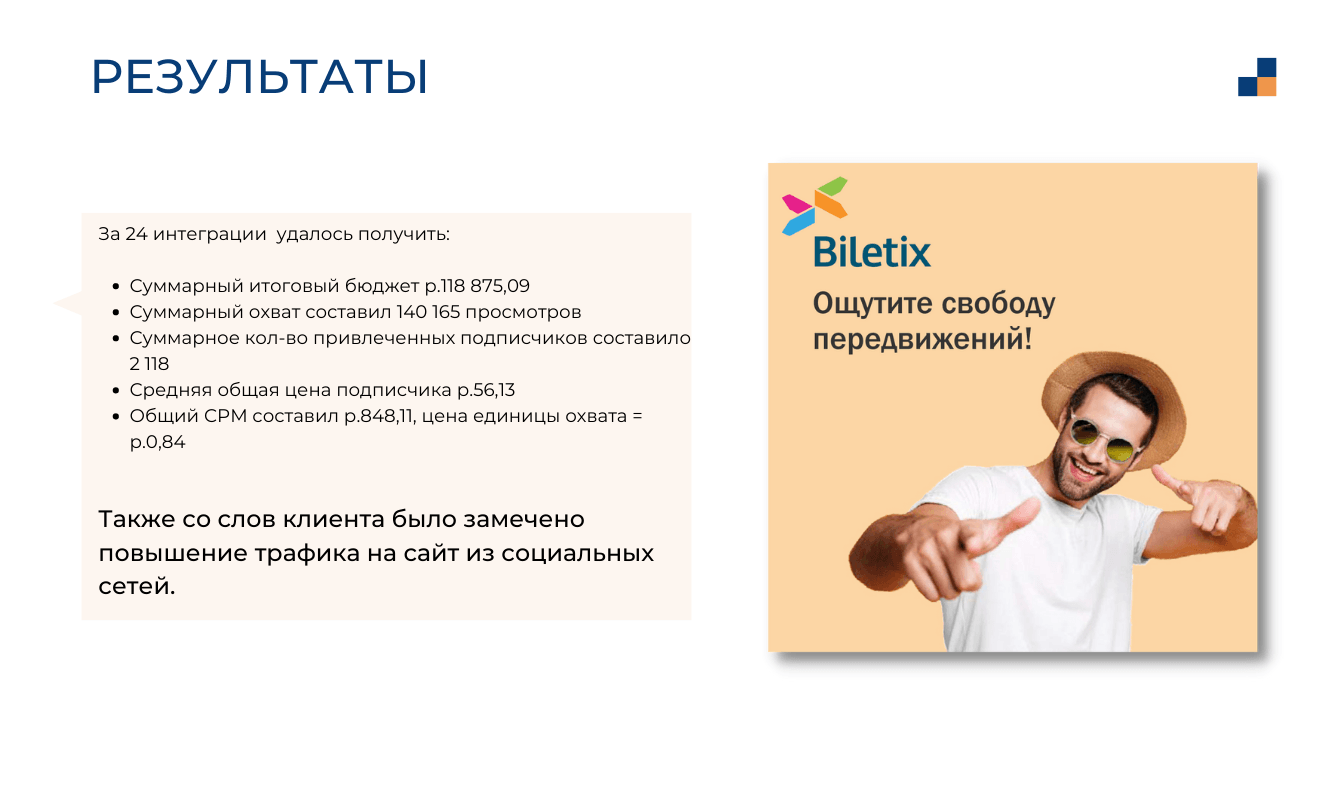По ходу проекта мы вышли, в среднем, на 4 интеграции в месяц, средний месячный рекламный бюджет 25 000 Р.