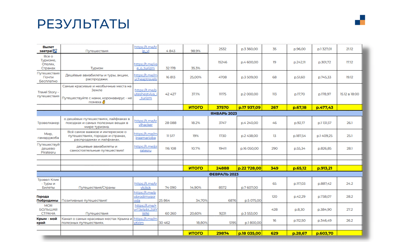 Также согласно стратегии и тестам, мы сосредоточились на каналах про путешествия, которые в изобилии представлены именно в Telegram.
