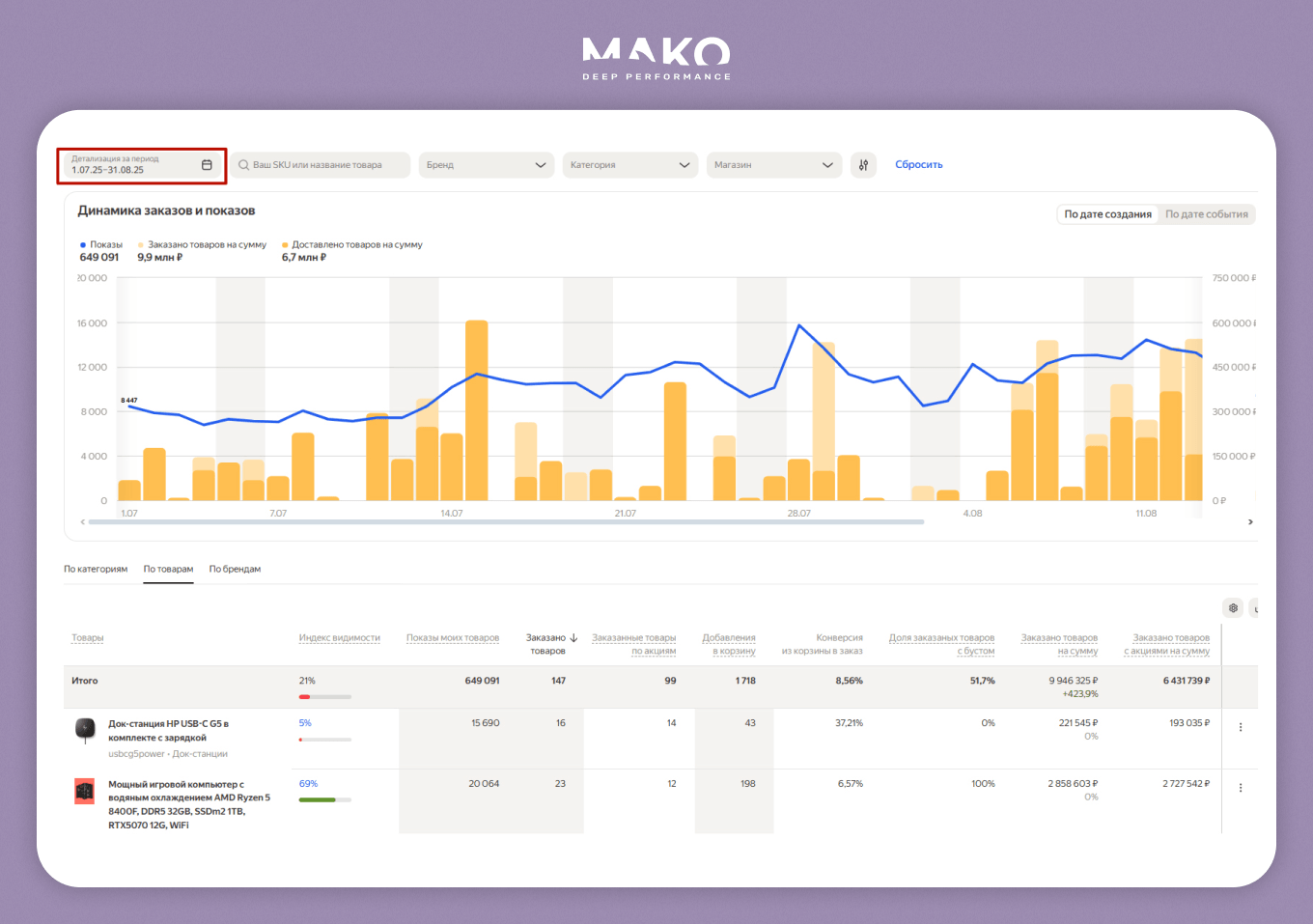 Мы проанализировали, какие позиции можем добавить в акции как совместно с бустом продаж, так и без него. Составили список товаров с учетом рентабельности, запустили рекламу и акции.