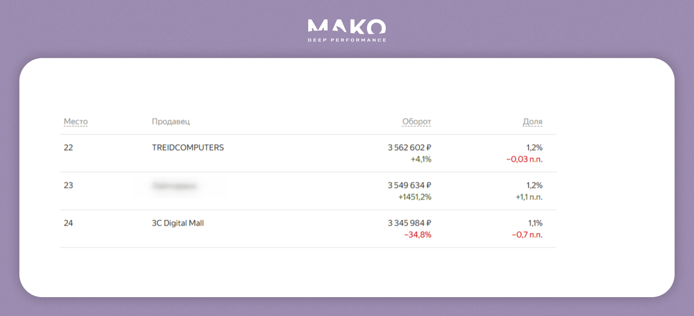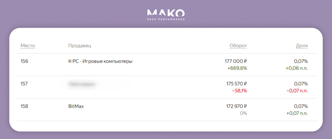 За 4 месяца магазин потерял 58% от оборота и находился на 157 позиции в своей категории.