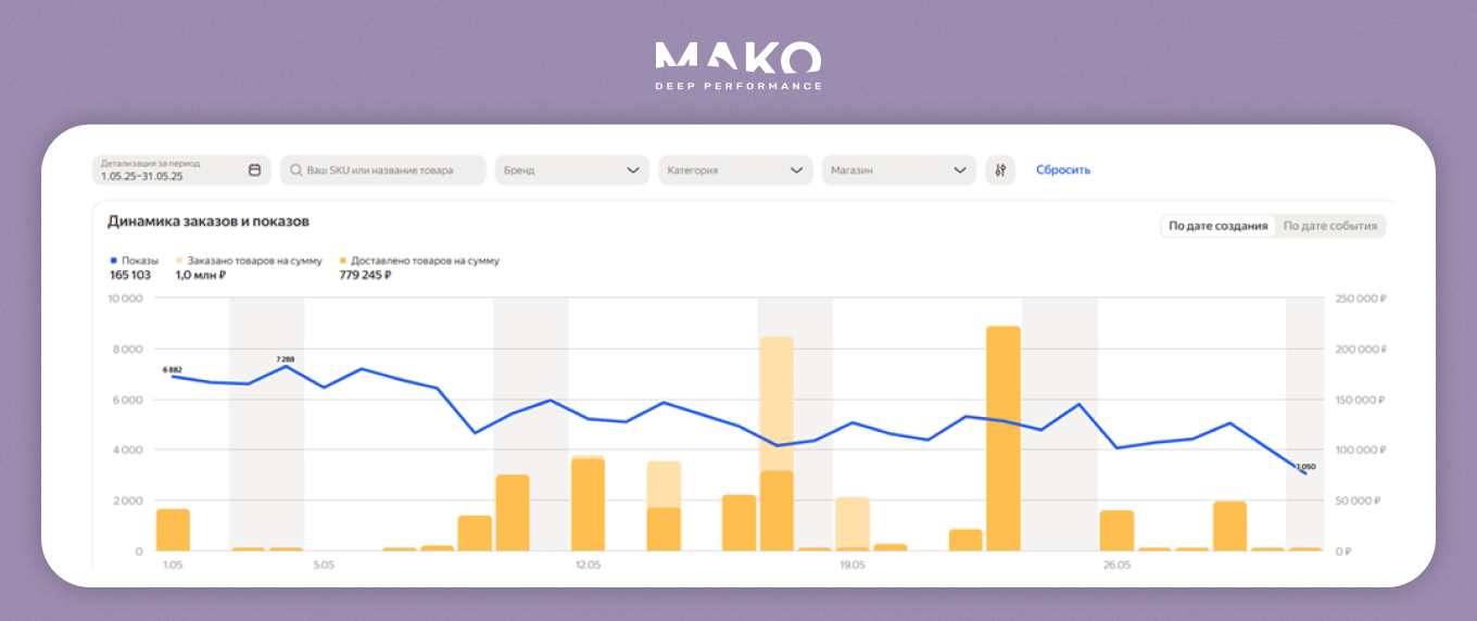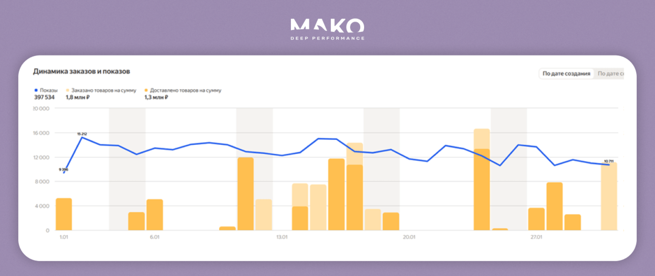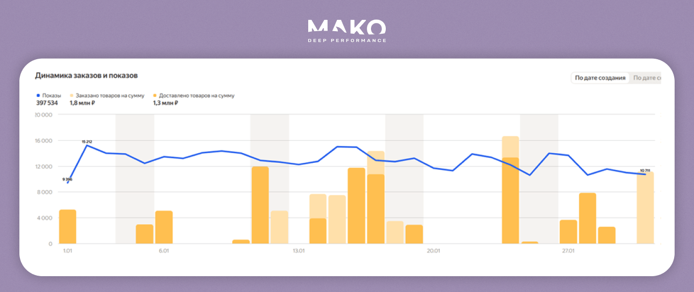 Но в 2025 году как отрезало. В январе число заказов значительно снизилось и не вернулось к прежнему уровню в течение всего первого квартала. Селлер пытался раскачать продажи, но не смог.