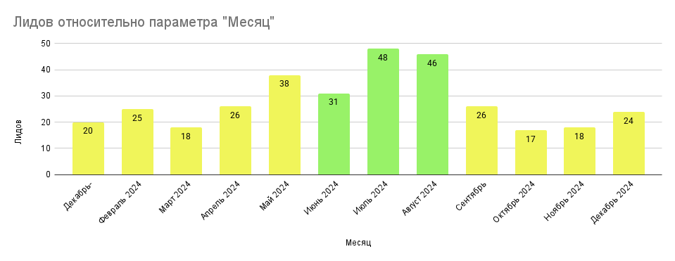 В следующих месяцах продолжили работу по этой стратегии, но столкнулись со снижением числа заявок. Предполагаем, что это связано с ростом средней стоимости ставки по нише и текущего бюджета не хватает для выкупа нужного количества показов. Поэтому одна из следующих целей – увеличение месячного бюджета в проекте и выстраивание новой стратегии.