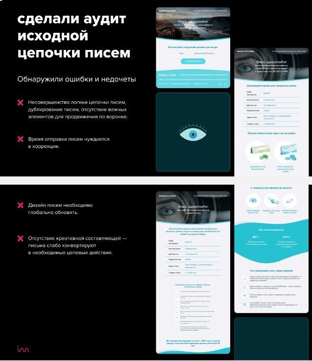 Свою работу мы начали с анализа текущих триггерных рассылок клиента и исследования офтальмологического рынка.
