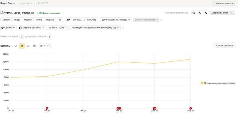 Наш клиент - крупный производитель лодок, лодочных моторов и фурнитуры, стремящийся максимально эффективно представить свой обширный ассортимент в интернете. Перед началом сотрудничества, несмотря на качественный контент и техническую оптимизацию сайта, динамика роста посещаемости была недостаточно высокой, а ключевые запросы в основном оставались за пределами ТОП-10 выдачи. Изучив ситуацию, мы выявили основную причину - несовершенная и устаревшая структура каталога продукции. Это критически важный фактор для интернет-магазинов и сайтов, реализующих товары через онлайн-каталоги.