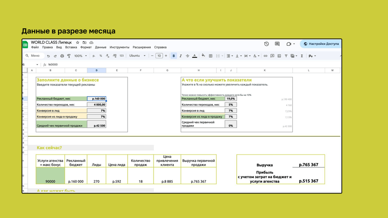 Все началось с внятно поставленной задачи. У World Class Липецк уже было все, о чем мечтают маркетологи: сильный продукт, высокая лояльность, узнаваемый бренд. Но лидов приходило мало, реклама стоила дорого, а любое изменение шло через руководителя (спойлер: это был один из главных камней преткновения, который мы смогли укатить подальше). Бюджет — 150 000 ₽ в месяц. Небольшой, но и не ветка, а потому — нужно было выстроить систему без рывков, распродаж и трехсот запущенных кампаний на тест. Сложная задача, но и мы не первый день у кабинетов Директа ошиваемся.