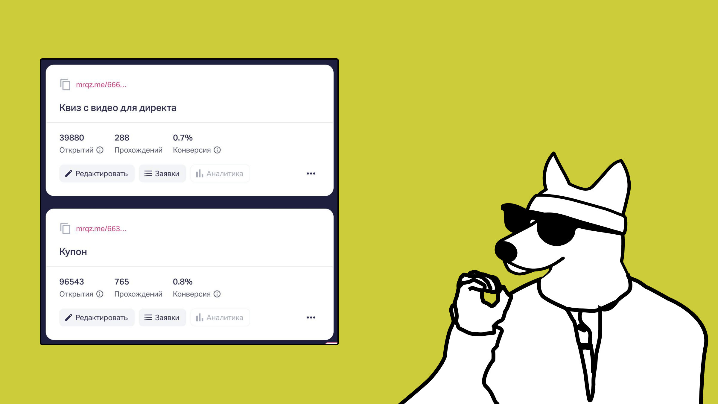 Параллельно прикрутили квизы на сайте, и они тоже пошли в нужном направлении: первый дал 288 заявок, второй — 765.