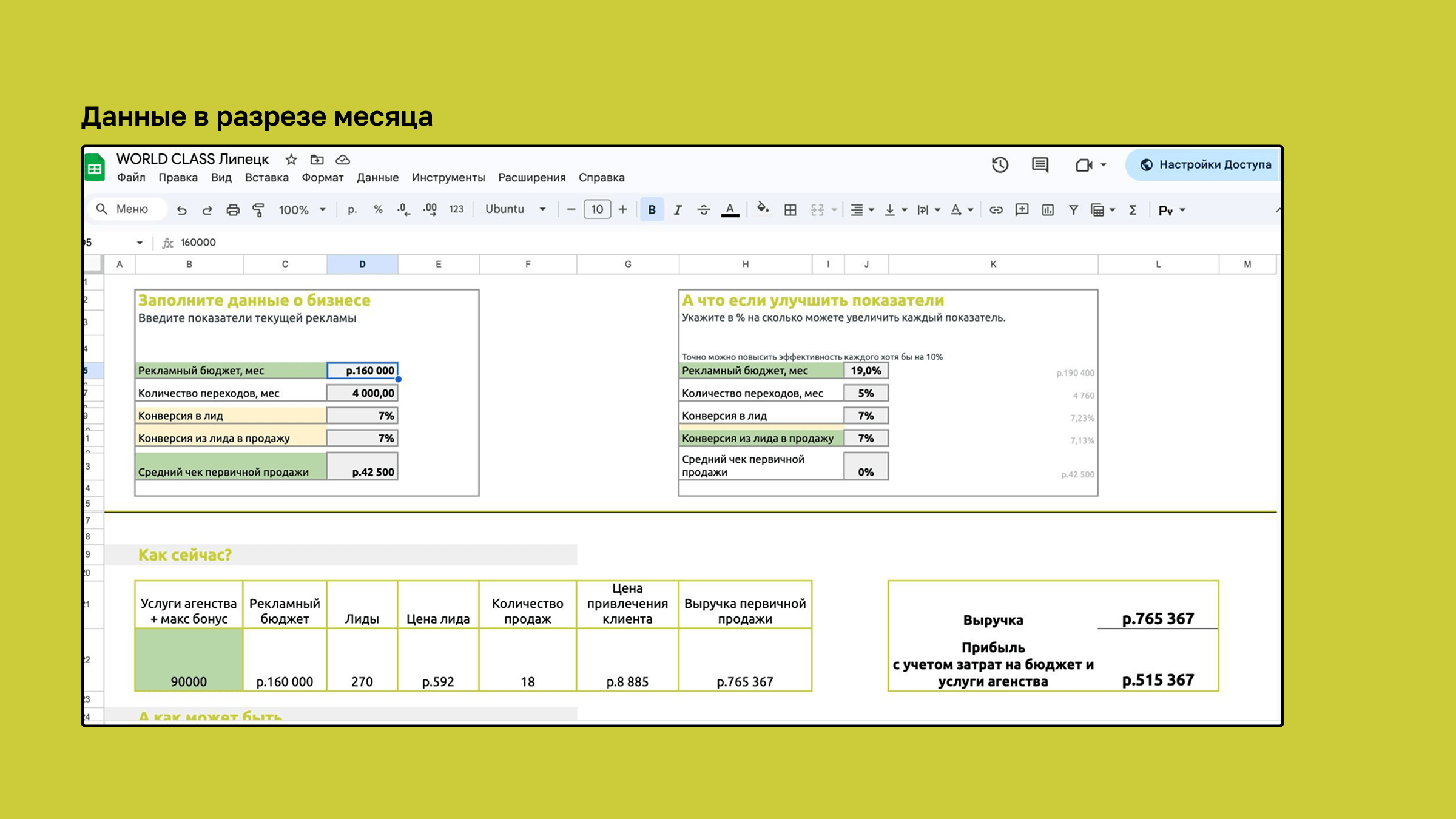 Все началось с внятно поставленной задачи. У World Class Липецк уже было все, о чем мечтают маркетологи: сильный продукт, высокая лояльность, узнаваемый бренд. Но лидов приходило мало, реклама стоила дорого, а любое изменение шло через руководителя (спойлер: это был один из главных камней преткновения, который мы смогли укатить подальше). Бюджет — 150 000 ₽ в месяц. Небольшой, но и не ветка, а потому — нужно было выстроить систему без рывков, распродаж и трехсот запущенных кампаний на тест. Сложная задача, но и мы не первый день у кабинетов Директа ошиваемся.