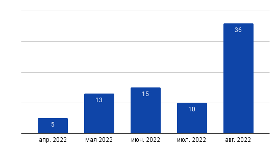 Сейчас мы продолжаем работу с клиентом и успешно удерживаем достигнутые показатели. Для наглядности полученных результатов за период апрель – август 2022 гг. мы собрали общую статистику на диаграммах: