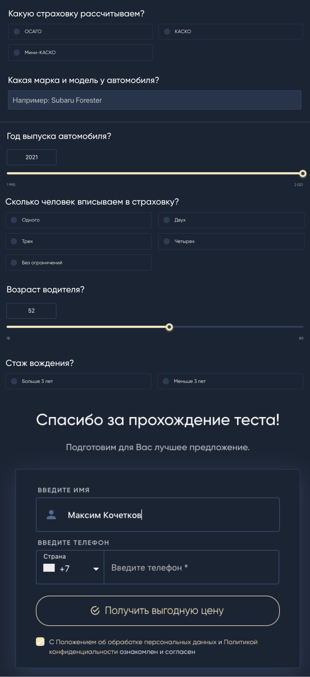 С помощью Яндекс.Метрики мы проанализировали трафик, который идет на сайт клиента благодаря SEO. 100% конверсий оттуда шло с запросов «КАСКО» и ОСАГО». Кроме того, мы заметили, что сайт клиента слабо конвертирует трафик в лиды.