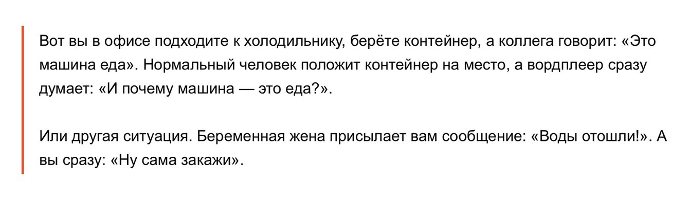 Мы постоянно балуемся с созвучиями: в магазине, за работой, в разговоре, за рулём и так далее. Так постепенно развивается навык находить альтернативные смыслы. Чтобы быстро (3–10 секунд) придумывать вордплеи, нужно развить в себе навык иронизировать над всем.