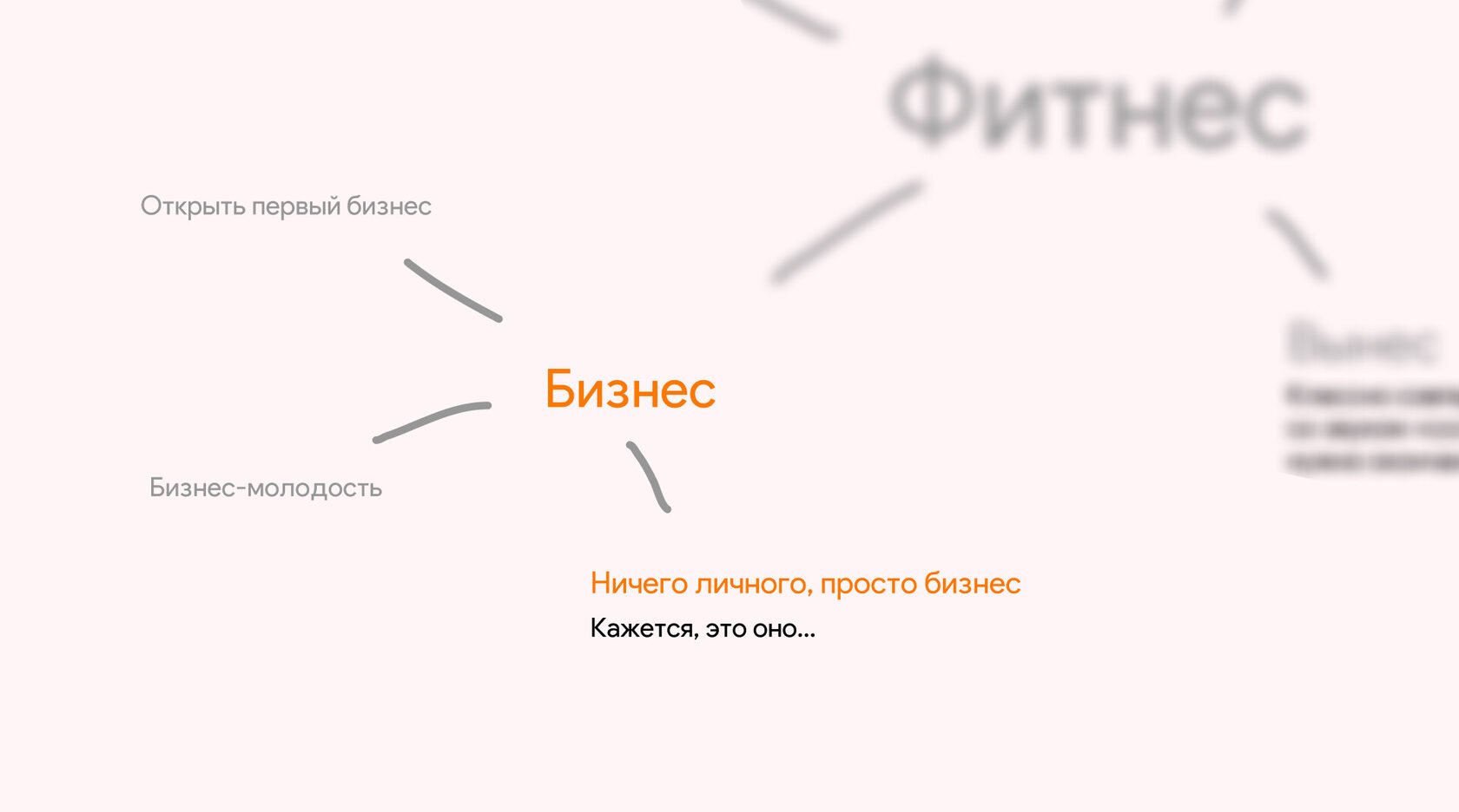 Когда мы нашли точную рифму к центральному понятию, нужно вспомнить самые узнаваемые контексты для нашей точной рифмы. В каком контексте мы часто слышим слово «бизнес»?