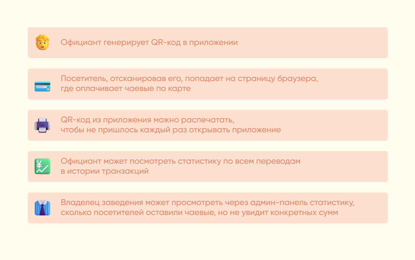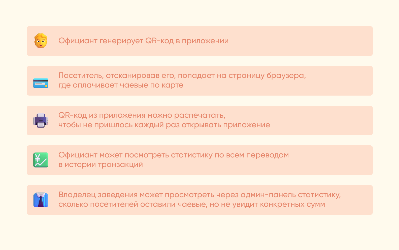 А устроено Together так — разберем на примере оплаты чаевых в ресторане:
