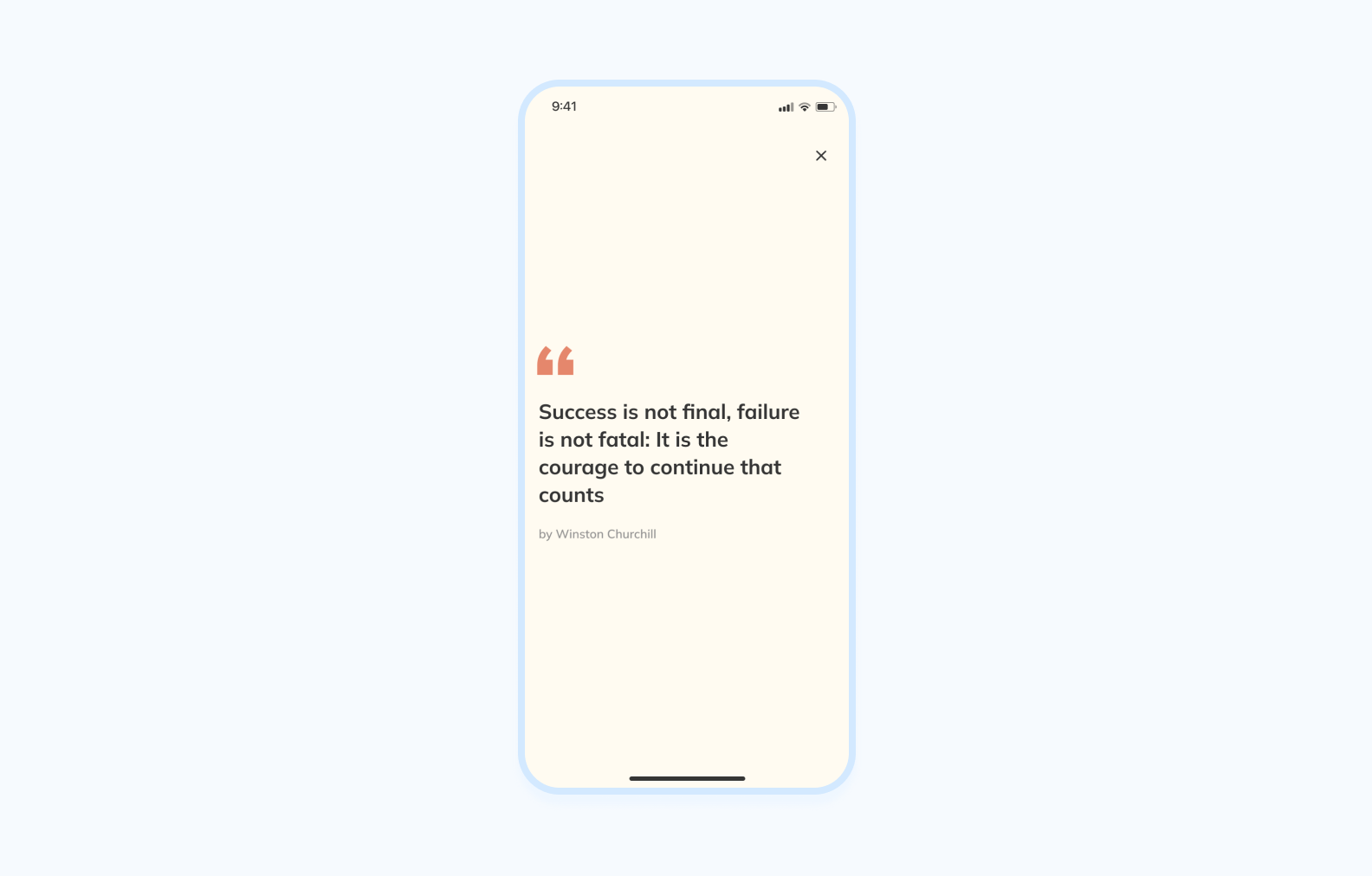 Заказчик остался доволен результатом: приложение получилось уникальным и свежим. Кроме того, он предложил интересную идею — пуш-уведомления с мотивационными цитатами от знаменитостей, которые пользователи могут просматривать в приложении. Такого точно ни у кого нет!