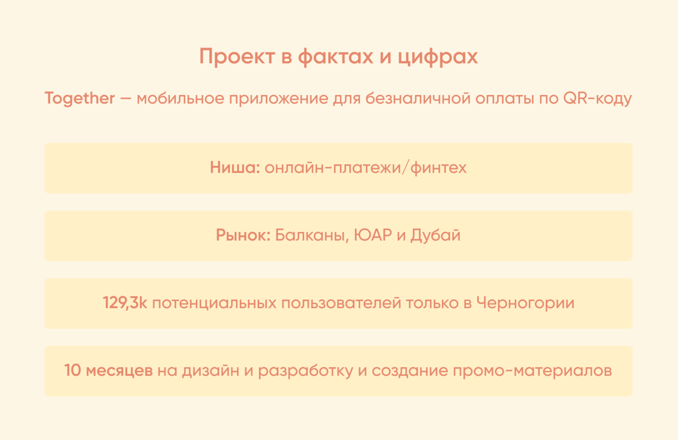 Клиенты основали собственный стартап — Together, и попросили нас задизайнить и разработать мобильное приложение. А идея проекта появилась из личных наблюдений за повседневной и деловой жизнью в Черногории.