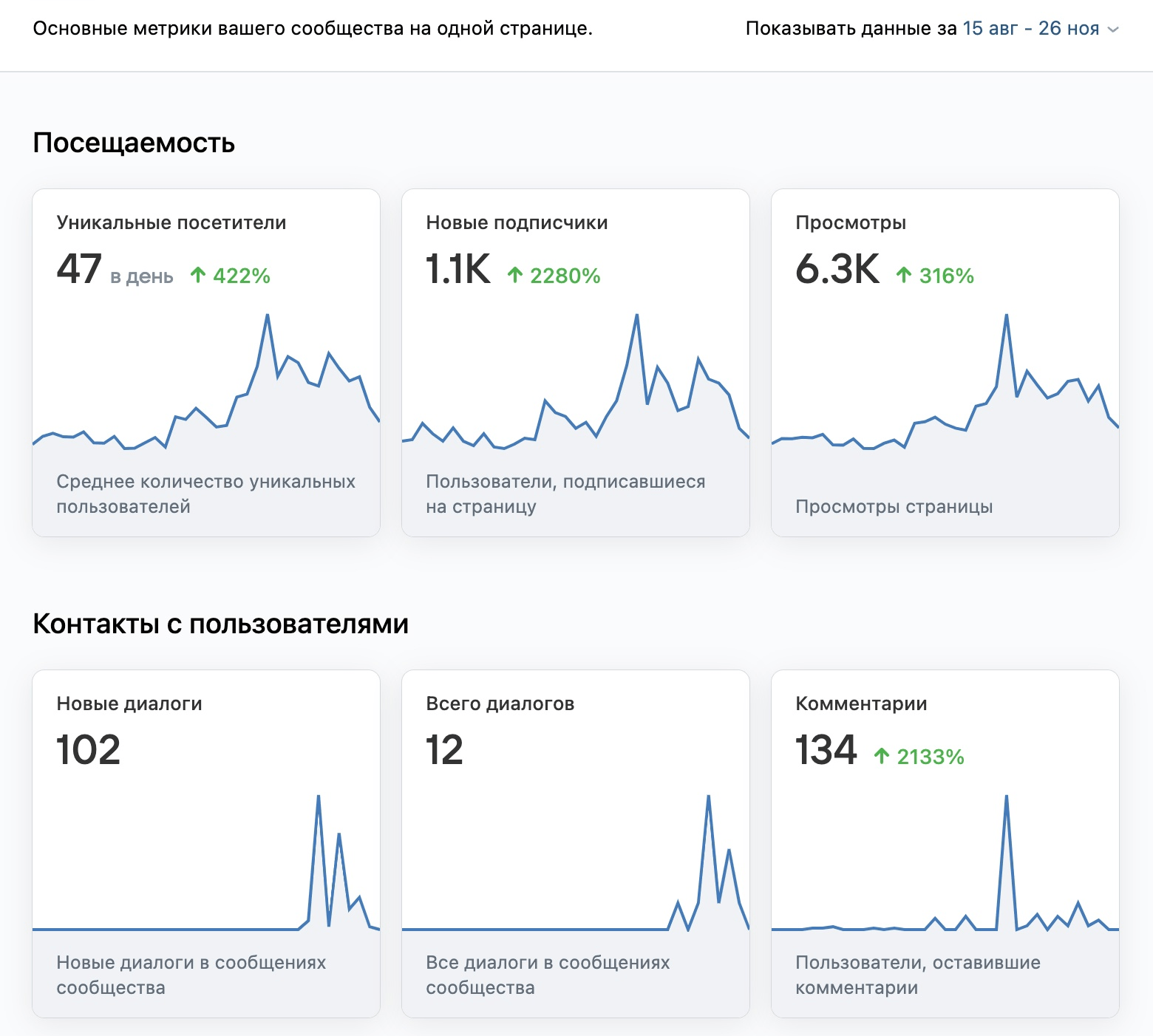 Дополнительно, наблюдалось увеличение статистики посещаемости группы и значительный рост переходов на сайт. И заявки на обучение в сообщения группы
