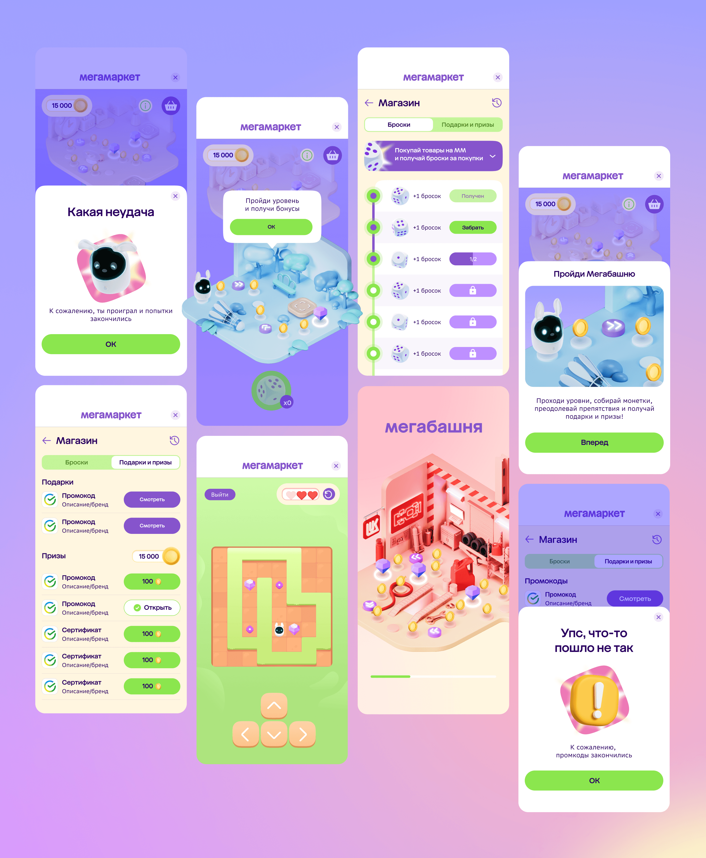 Команда маркетплейса Мегамаркет пришла в Mish за разработкой механики для игры на внутреннюю площадку. А кроме механики — за всем дизайном, иллюстрациями и дополнительными игровыми мирами. Игра решала сразу несколько задач: