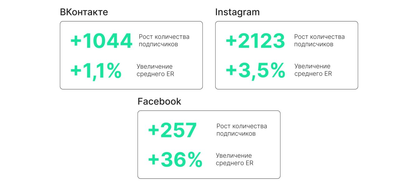 Заказчик допускал кросс-постинг, поэтому наиболее удачные посты мы выкладывали сразу в несколько соцсетей.