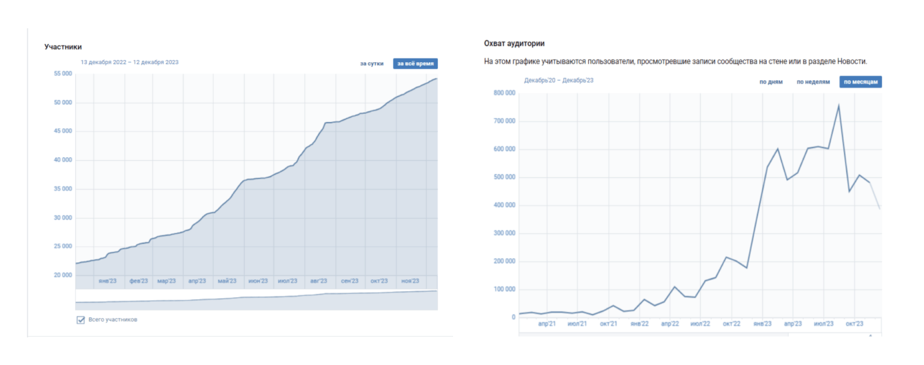 Прирост органического трафика - 7.000 подписчиков за счет репостов участников и приглашений в сообщество