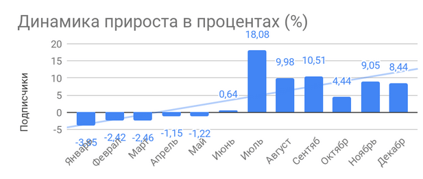Средняя динамика прироста новых подписчиков +7,49% в месяц.