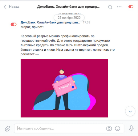 Переходы на сайт осуществлялись из публикаций «Журнал про Дело», «Покажем Делом», продуктовые публикации Делобанка. По итогам переходов зарегистрировано 30 заявок на РКО.