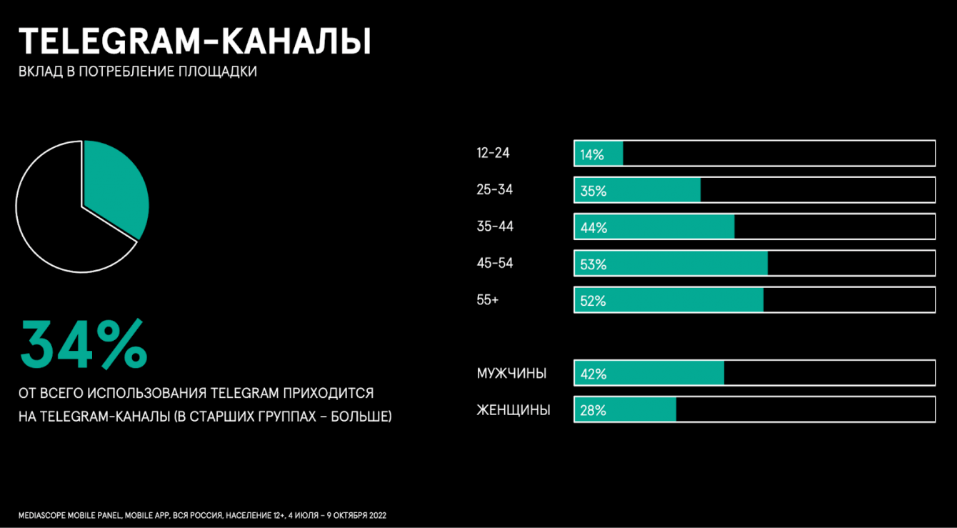 Ежедневная аудитория Telegram превышает 42 миллиона человек. При этом основной портрет пользователя мессенджера – взрослый, платежеспособный мужчина.