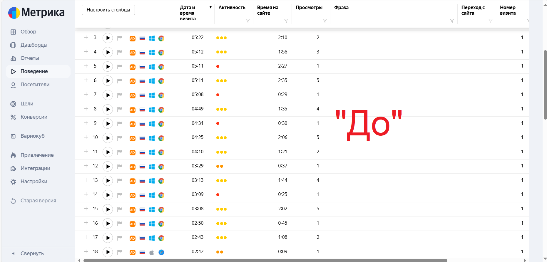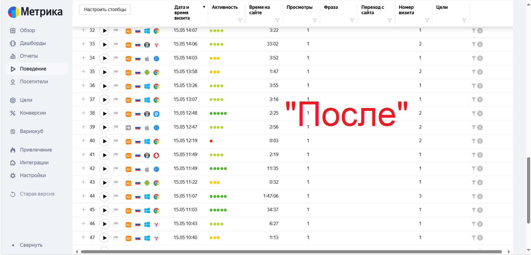 Ниже вы можете посмотреть на сравнение поведения пользователей на сайте "до" и "после" изменений.