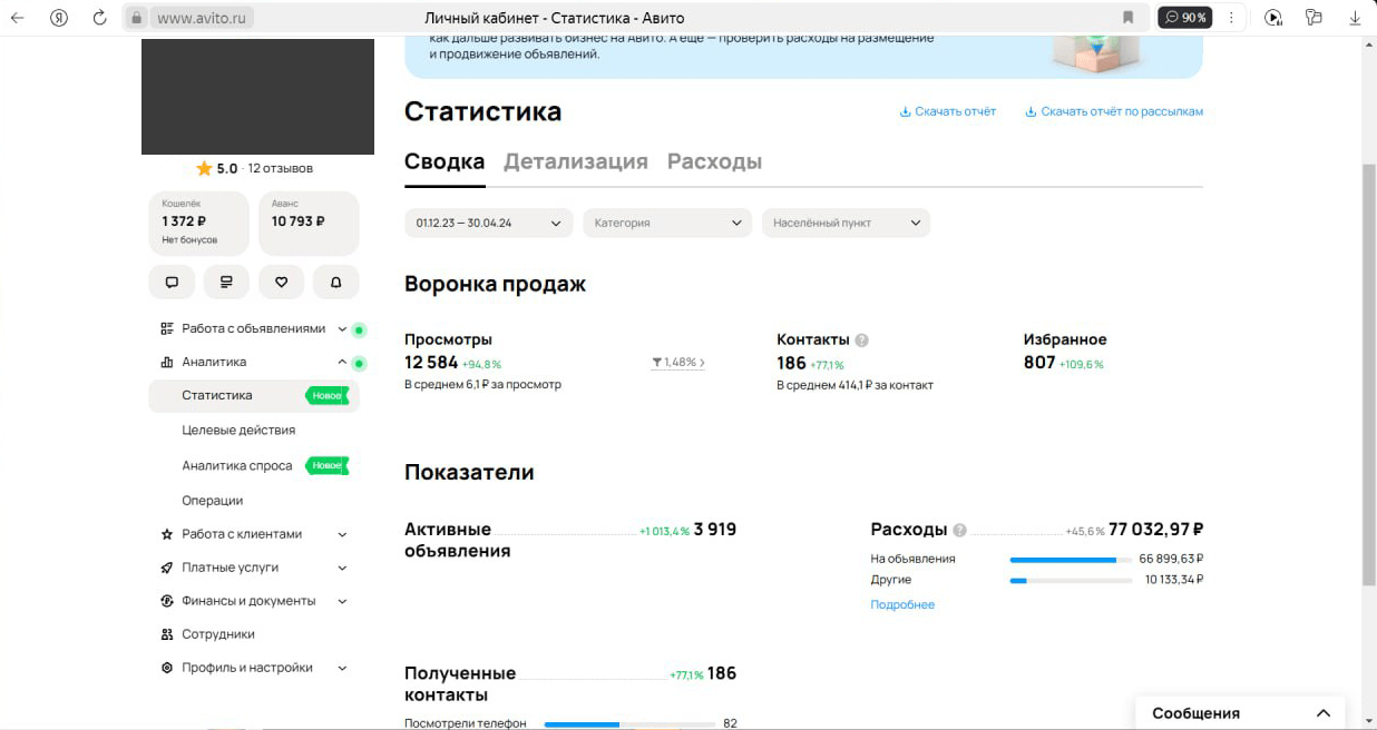 Посмотрите на скриншот кабинета Avito.Pro за период работы на момент написания этого кейса: