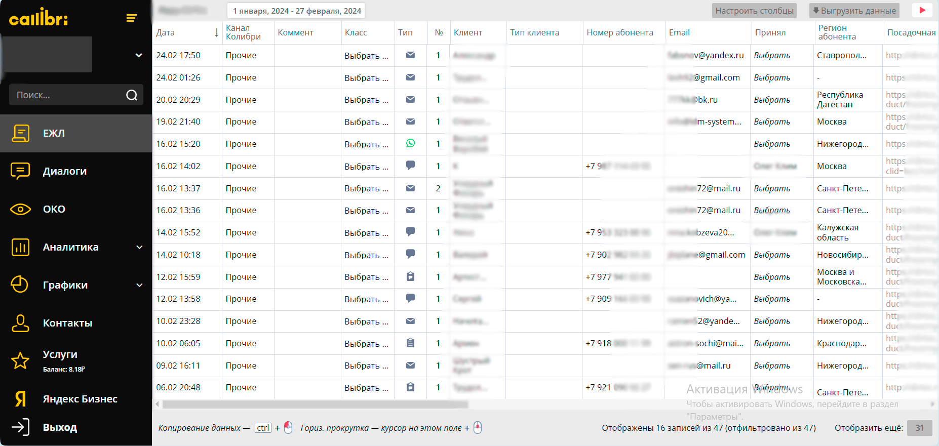 Когда клиент совершает звонок или отправляет электронное письмо, система точно определяет, с какого рекламного объявления он пришел. При этом сам звонок или письмо перенаправляются на ваш основной номер телефона или адрес электронной почты.Для реализации данной функциональности мы используем сервис Callibri.