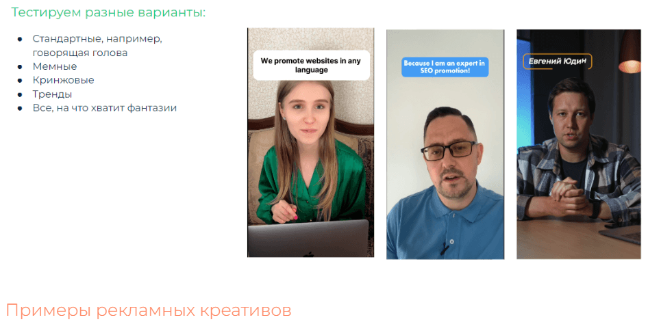 Креативов нужно много, и их стоит постоянно тестировать. Аудитория может "выгореть" и перестать реагировать на одно и то же видео. Новое видео привлечёт свежую аудиторию и "догреет" тех, кто уже видел старую рекламу.