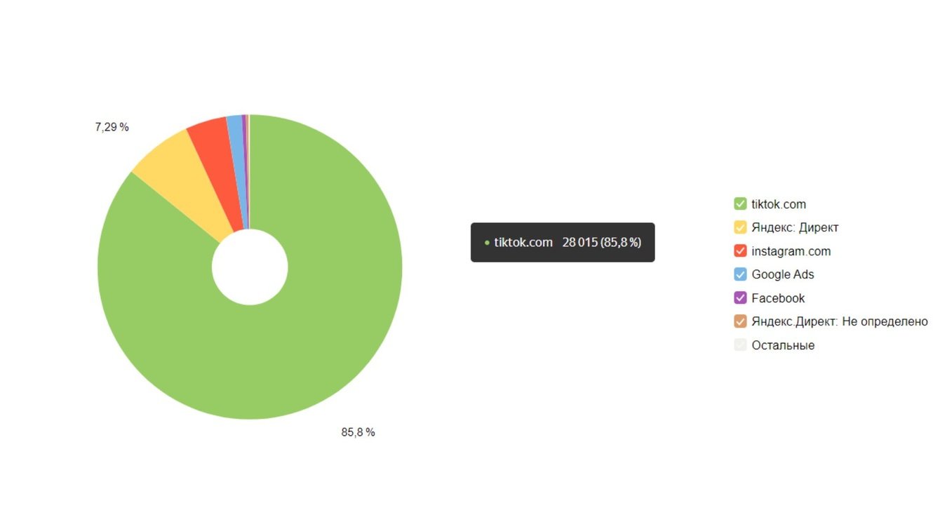 Однако благодаря дешевизне трафика целевое действие с тик тока получается дешевле в 3 раза по сравнению с остальными видами трафика.