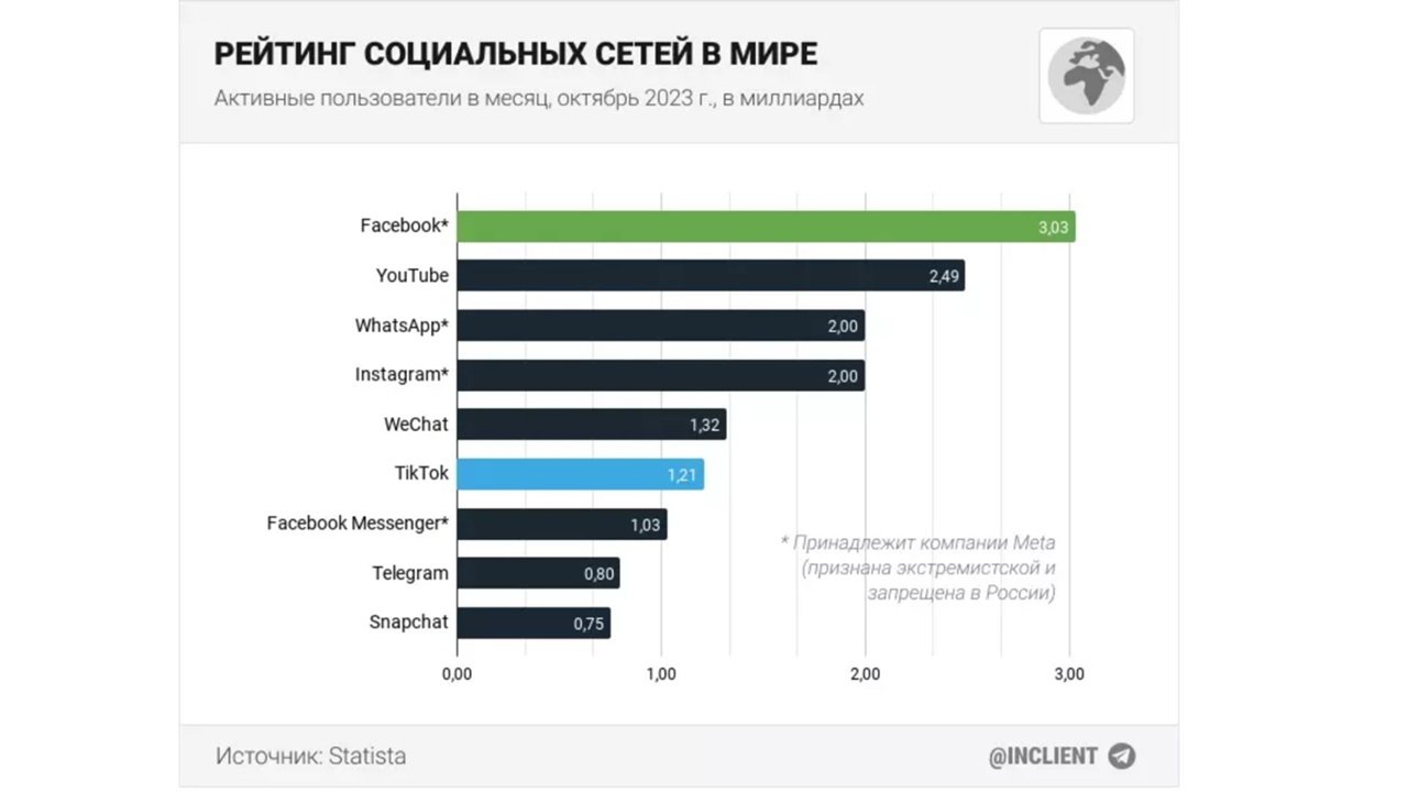 А СТР Тик Тока сопоставим с фейсбуком и инстаграм