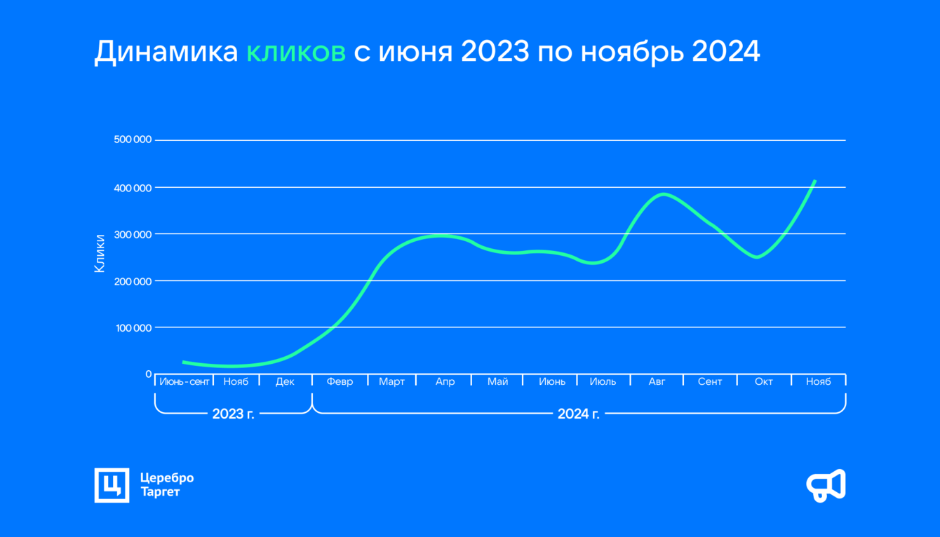 — Осень 2024. Столкнулись с колебаниями в рекламных кампаниях в посевах. Возросли цена клика и цена за 1000 показов, что даже сподвигло нас создать полноценное контент-производство для клиента.