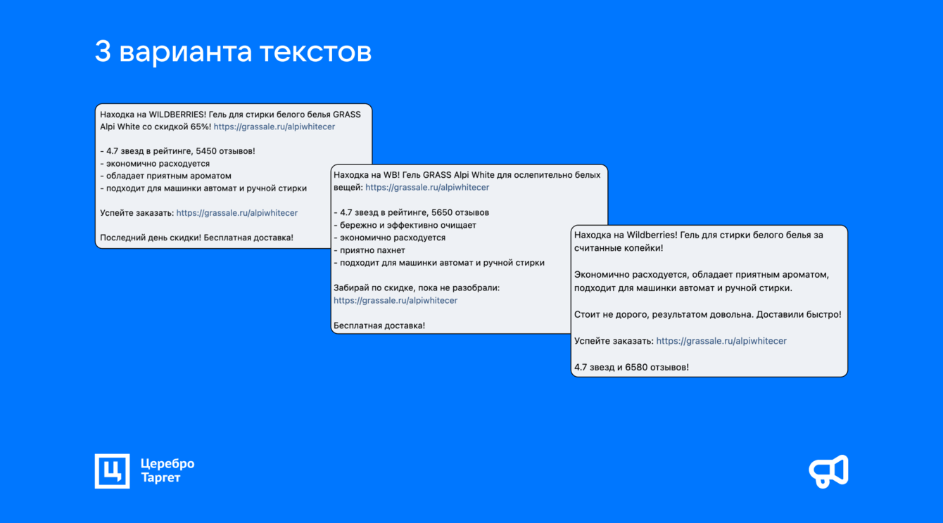 Эти показатели оптимальны для клиента и на уровне посевов в 2024 году. Но напомним, GRASS пришел к решению совмещать таргет и посевы, чтобы получать максимум охватов.