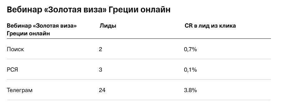 После вебинара у клиента состоялась сделка от рекламы в РСЯ. Стоит отметить, что сумма сделки в отрасли очень крупная и с лихвой покрывает вложения в рекламу. В результате продажи записи вебинара также состоялась сделка. Инструмент эффективно сработал на аудиторию, которая еще не была готова к решению, но заинтересована в продукте.